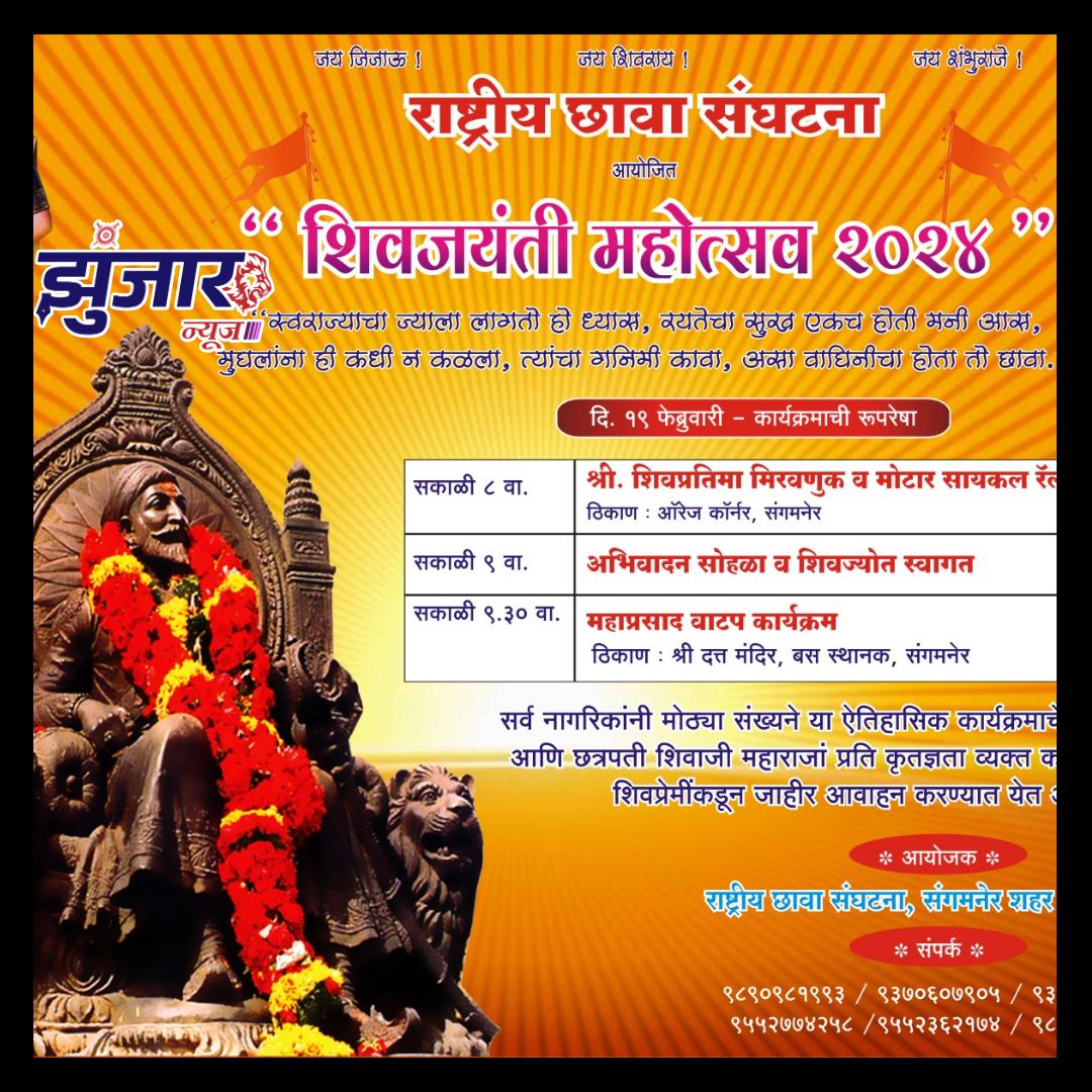संगमनेर येथे राष्ट्रीय छावा संघटनेच्या वतीने शिवजयंती निमित्त सोमवार दिनांक १९ फेब्रुवारी रोजी सकाळी ८ ते ९.३० वाजे दरम्यान शिवजयंती महोत्सव २०२४ चे आयोजन करण्यात आले आहे. यामध्ये शिवप्रतिमा मिरवणूक व मोटार सायकल रॅली, अभिवादन सोहळा, शिवज्योतीचे स्वागत व खिचडी वाटप असे विविध कार्यक्रम घेण्यात येणार असल्याची माहिती छावा संघटनेचे महाराष्ट्र युवक अध्यक्ष प्रविण कानवडे यांनी दिली.